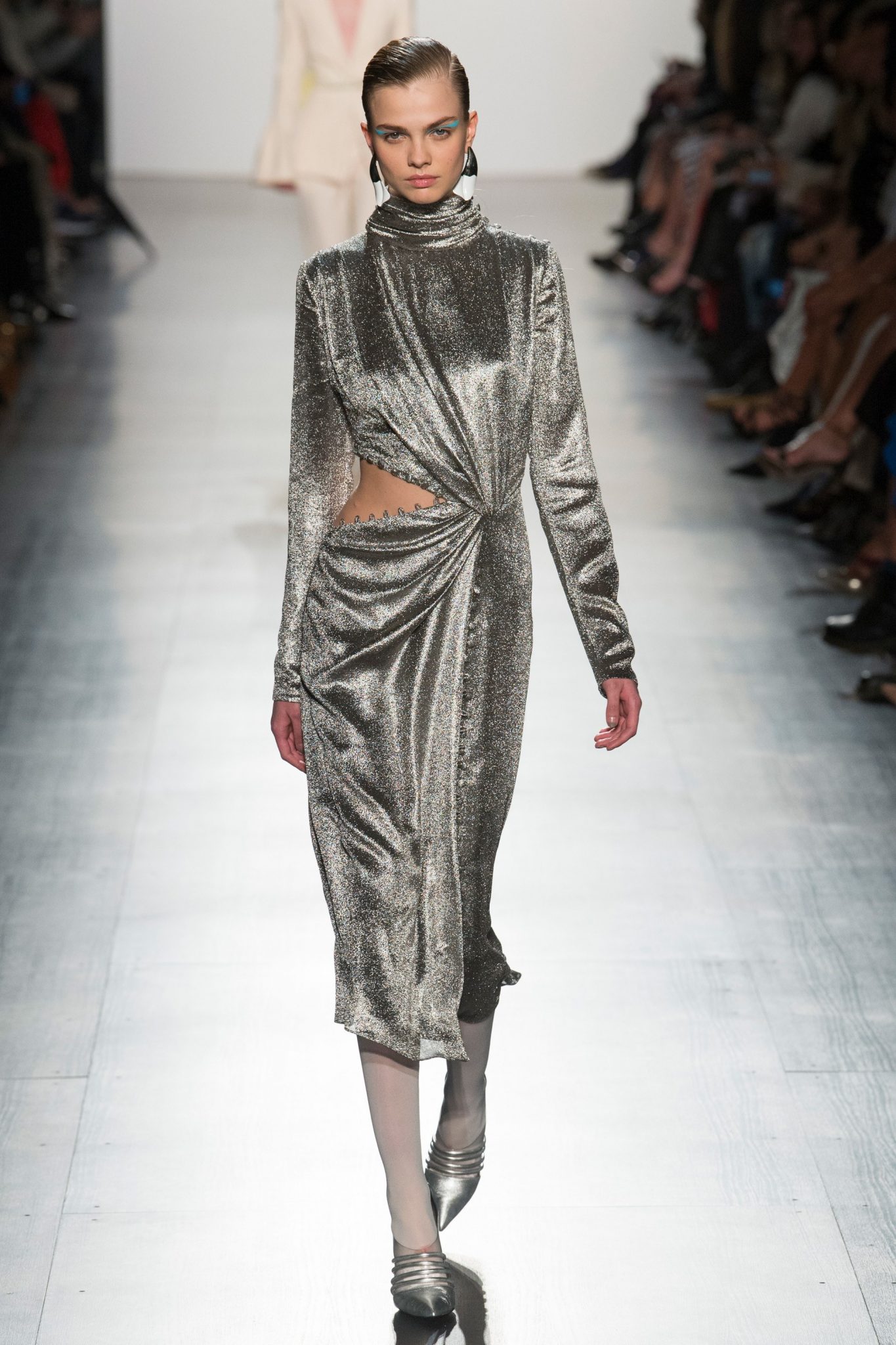 Silver has left its comfortable place as being the metallic color that is only worn during the holiday season. The chrome chemical has left its natural habitat in the accessory world for a new place in the apparel one. Fall ’17 gave a purpose to the often formal use of silver in fashion. From almost liquid-like leathers to silver surfing greys, designers everywhere created more modern methods for a fall trend that is too good not to ride.